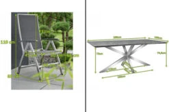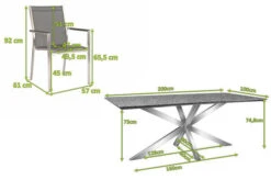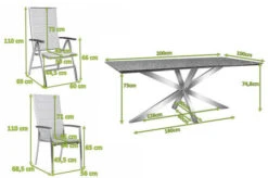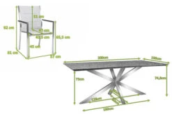 STERN Esstischgarnitur, Silber/grau, Edelstahl/Textilene, Tisch 200 X 100 Cm, 6 Stapelsessel, Padded