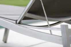 STERN Cardiff Esstischgruppe, Silber/taupe, Edelstahl/Teak, Tisch 90 X 90 Cm, 4 Multipositionssessel