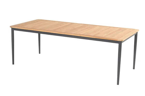 Das Set passt zu jedem Gartenstil und bietet genügend Platz für 8 Personen, damit Sie gemütliche Grillabende mit Ihrer ganzen Familie verbringen können. Die Leichtigkeit des modernen Designs werden Sie in Ihrem Garten nicht mehr missen möchten. Genießen Sie den Komfort, der jeden Aufenthalt im Freien zu etwas Besonderem werden lässt – die hochwertigen und pflegeleichten Materialien bieten Ihnen den nötigen Schutz, wenn das Wetter einmal nicht mitspielen sollte.Das Gestell des Tisches wird aus pulverbeschichtetem und rostfreiem Aluminium gefertigt. Wetterumschwünge und Regen machen diesem Gestell nichts aus. Rost hat keine Chance. Dieses im Trend liegende Material ist leicht, robust und stabil. Es ist pflegeleicht, wetterfest und ganzjährig für den Außeneinsatz geeignet. Kein Wunder also, dass viele der hergestellten Gartenmöbel inzwischen mit Aluminium verarbeitet werden.Die Tischleisten aus FSC-zertifiziertem Teakholz verleihen diesem Tisch einen ganz besonderen Charme. Darüber hinaus ist Teakholz besonders witterungsbeständig und hält sowohl Hitze und Frost, als auch Regen und Feuchtigkeit aus. Es hat außerdem aufgrund des hohen Anteils an holzeigenen Ölen einen natürlichen Schutz gegen Pilze und andere Schädlinge.Die Sessel aus der Alice-Serie von Hartman überzeugen durch die qualitative Verarbeitung und die Verwendung ausgesuchter Materialien. Die Armlehnen aus FSC-zertifiziertem Teakholz erzeugen eine unverwechselbare Optik und machen die Stühle zu einem einzigartigen Möbelstück. Das Gestell aus robustem Aluminium sorgt für ein geringes Eigengewicht von ca. 4,3 kg den Multipositionssesseln, sowie 5,3 kg bei einer hohen Stabilität, sodass die Sessel mit bis zu 130 kg belastbar sind. Um Ihren Terassenboden vor Kratzern und Macken zu schützen, verfügen die Füße über praktische Bodenschoner. Dank der vorteilhaften Stoffzusammensetzung der 4×4 Textilenbespannung aus 70% Polyvinylchlorid und 30% Polyester profitieren Sie von einer langen Haltbarkeit. Das flexible Material trotzt spielend den üblichen Witterungseinflüssen, passt sich optimal Ihrem Körper an und macht die Modelreihe auch ohne Auflage sehr bequem.