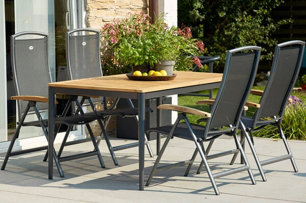 4x Multipositionssessel Raffaelo in xerix/anthrazit, Armlehnen aus FSC®-Teakholz