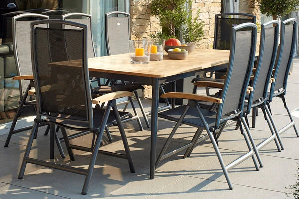 8x Multipositionssessel Raffaelo in xerix/anthrazit, Armlehnen aus FSC®-Teakholz