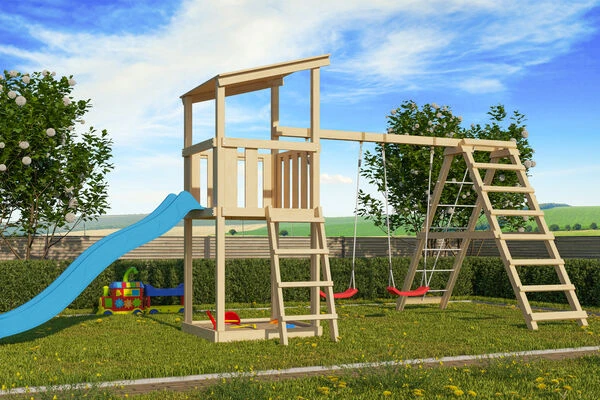 KARIBU Anna Turm, nordische Fichte, mit Rutsche in verschiedenen Farben und Schaukel