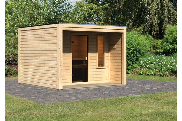 Saunahaus Eldor aus Fichtenholz mit Terrasse, naturbelassen in verschiedenen Ausführungen von KARIBU