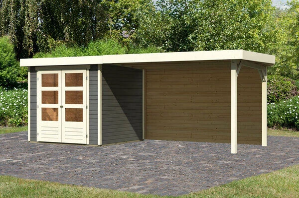 1x KARIBU Gartenhaus Askola 2 , terragrau , ca. 504,5 x 217 x 211 cm