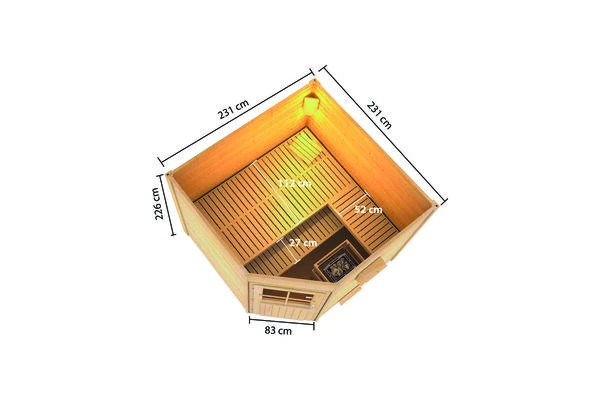 1x KARIBU 38 mm Saunahaus Heikki mit Eckeinstieg in verschiedenen Ausführungen inkl. Montageanleitung und -material