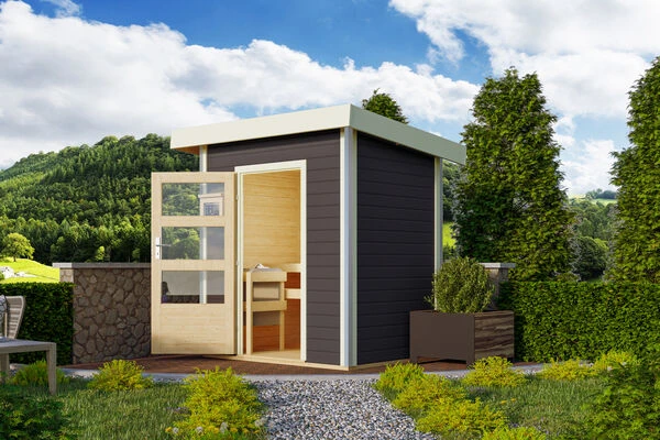 Saunahaus Jorgen aus Fichtenholz mit Fronteinstieg in verschiedenen Ausführungen von KARIBU