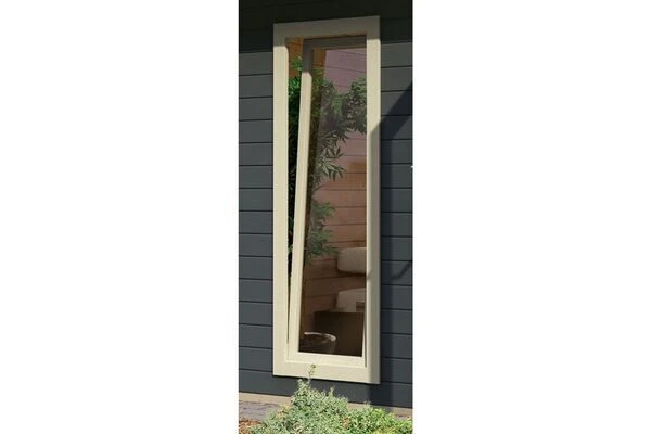 Die Außensauna kommt mit der exklusiven Chrome-Line Ausstattung, welche Alu-Eckleisten sowie eine Alu-Türschwelle umfasst. Die im Lieferumfang enthaltenen zwei Liegen aus Espenholz (ca. 57 cm breit) und ein Offenschutzgitter sorgen für mehr Komfort und Sicherheit im Inneren der Sauna. Zwei Dreh/- Kippfenster sorgen für viel frische Luft und Licht.