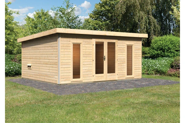 1x KARIBU 38 mm Saunahaus Mainburg 4 SET A mit Doppelflügeltür und Vorraum, in verschiedenen Ausführungen inkl. Montageanleitung und -material