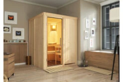 Sauna Norin aus Fichtenholz mit Fronteinstieg inkl. Klarglastür in verschiedenen Ausführungen von KARIBU