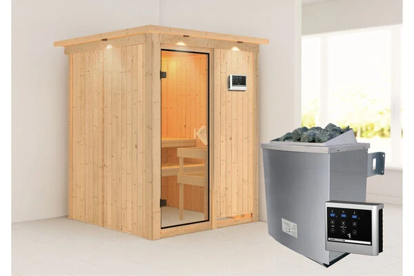 Sauna Norin aus Fichtenholz mit Fronteinstieg inkl. bronzierter Tür in verschiedenen Ausführungen von KARIBU