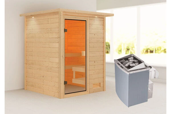 1x KARIBU Sandra Sauna inkl. Kranz SET, Ofen 4,5 kW integr. Strg.