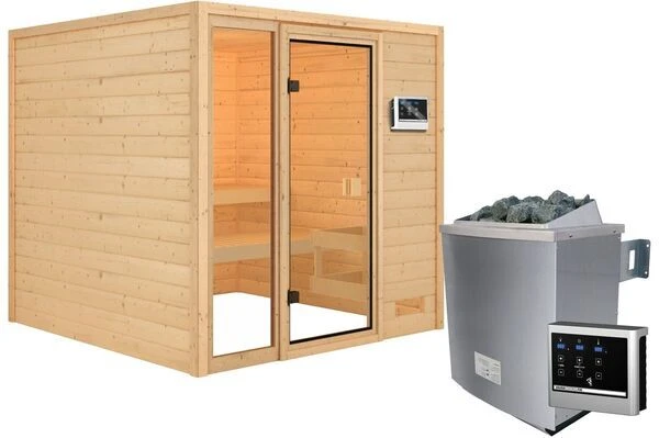 Sauna Jutta von KARIBU mit diversen Kranz-, Ofen- und Steuerungsoptionen