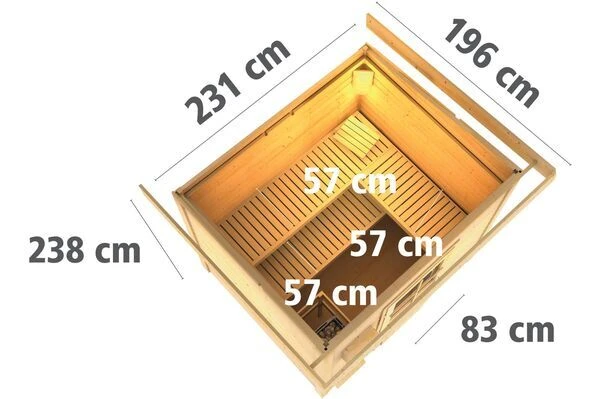 - Innenmaße Sauna ca. 219 x 184 x 190 cm