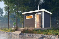 Saunahaus Skrollan 1 aus Fichtenholz mit Vorraum und Holzofen, in verschiedenen Ausführungen von KARIBU