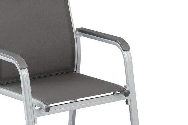 Mit den passenden Stapelsesseln aus der Basic Plus Serie kommen Sie so bequem durch den Sommer. Das solide und formschöne Gestell besteht aus edlem, silberfarbenem Aluminium. Die anthrazitfarbene Sitzfläche wird aus wasserdurchlässigem, hochwertigem Outdoorgewebe gefertigt. Die Sitzfläche nimmt kein Wasser auf und trocknet schnell, so können Sie auch nach einem kleinen Regenschauer rasch wieder Platz nehmen. Das luftige Gewebe ist formstabil und trotzdem sehr bequem und zusätzlich UV- und sonnenölbeständig – insgesamt also der perfekte Begleiter in Ihrem Garten. Die Sessel lassen sich aufstapeln – wenn sie nicht benötigt werden können Sie sie platzsparend verstauen.