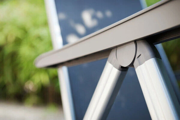 Mit den passenden Multipositionssesseln aus der Basic Plus Serie kommen Sie so bequem durch den Sommer. Mittels Rasterschiene lässt sich der Sessel leicht in 4 verschiedene Positionen bringen – so wird der Komfort eines Liegestuhls direkt integriert. Das solide und formschöne Gestell besteht aus edlem, silberfarbenem Aluminium. Die anthrazitfarbene Sitzfläche wird aus wasserdurchlässigem, hochwertigem Outdoorgewebe gefertigt. Die Sitzfläche nimmt kein Wasser auf und trocknet schnell, so können Sie auch nach einem kleinen Regenschauer rasch wieder Platz nehmen. Das luftige Gewebe ist formstabil und trotzdem sehr bequem und zusätzlich UV- und sonnenölbeständig – insgesamt also der perfekte Begleiter in Ihrem Garten. Dank der leichten Materialien und des Klappmechanismus lässt sich der Stuhl leicht zu handhaben – wenn er nicht benötigt wird können Sie ihn platzsparend verstauen.