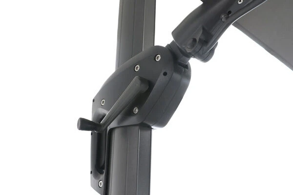 Die Twist-Funktion dieses Ampelschirms ermöglicht eine besonders komfortable Einstellung des Schirmdachs, so dass Sie es immer genau dem Sonnenstand entsprechen ausrichten können: