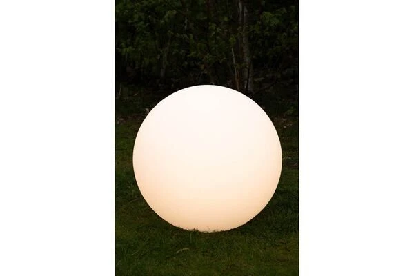 Gefertigt aus robustem Polyethylen ist diese Dekolampe sowohl für den Indoor-, als auch für den Außeneinsatz geeignet. Sie ist UV-beständig, wetterfest und pflegeleicht. Eine optimale Haltbarkeit erzielen Sie, indem Sie die Lampe regelmäßig im ausgeschalteten Zustand mit einem feuchten Tuch abwischen. So verhindern Sie, dass sich Schmutz absetzt. Die Lampe hat die Maße von ca. 60 x 58,5 cm, ein Gewicht von ca. 4 kg. Die Kabellänge beträgt ca. 235 cm, was sie bei Ihrer Standortwahl sehr flexibel macht. Diese Leuchte besitzt eine E27 Fassung mit vorinstalliertem warmweißem LED-Leuchtmittel und bietet somit die größtmögliche Flexibilität bei der Wahl der Lichtquelle. Sie können warmweiße, kaltweiße oder farbige Leuchtmittel verwenden, smarte LED-Lampen mit Farbwähler, Energiesparlampen uvm. Die im Lieferumfang enthaltene Fernbedienung bietet noch größeren Gestaltungsspielraum bei der Farbauswahl und Dekoration.