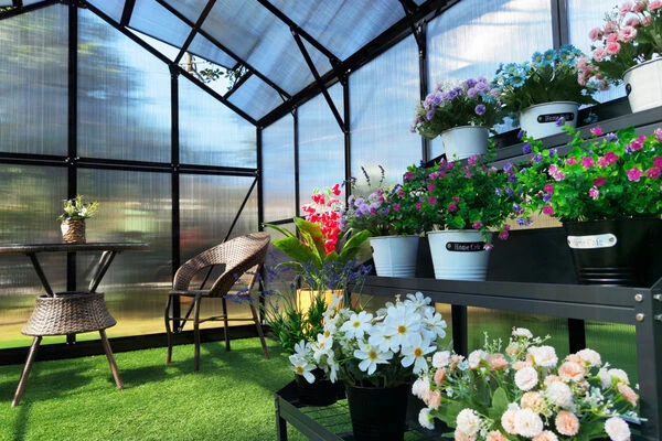 - Material Dach und Wände: Polycarbonat (6 mm)