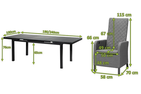 1x Premium Ausziehtisch OUTFLEXX®, anthrazit matt/grau, ca. 180/240 x 100 x 76 cm