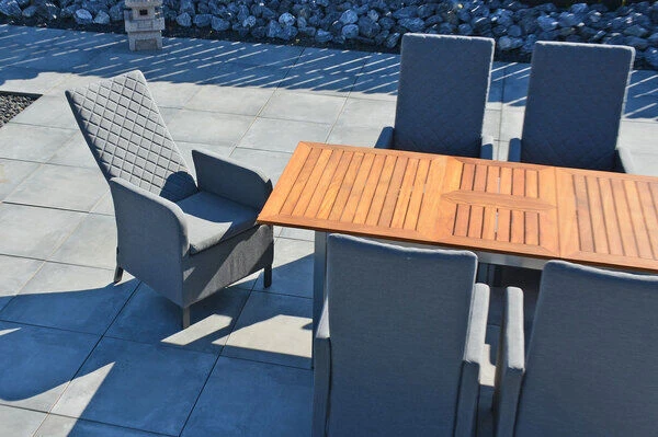 Die hochwertigen Materialien und die sorgfältige Verarbeitung sorgen für die exklusive Optik und die Langlebigkeit des Tisches. Teakholz und Edelstahl sind besonders witterungsbeständig und halten sowohl Frost und Hitze als auch Feuchtigkeit und Regen aus. Teakholz hat aufgrund des hohen Anteils an holzeigenen Ölen einen natürlichen Schutz gegen Pilze und Schädlinge. So beschränkt sich die Pflege Ihres neuen Gartentisches auf ein Minimum und Sie können Ihre Zeit im Garten mit angenehmen Tätigkeiten verbringen.