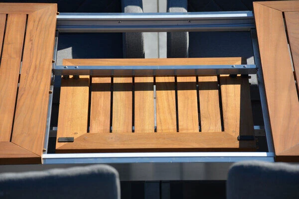 1x OUTFLEXX® Ausziehtisch, natur, FSC-Teak/Edelstahl, ca. 150/200 x 90 x 75 cm
