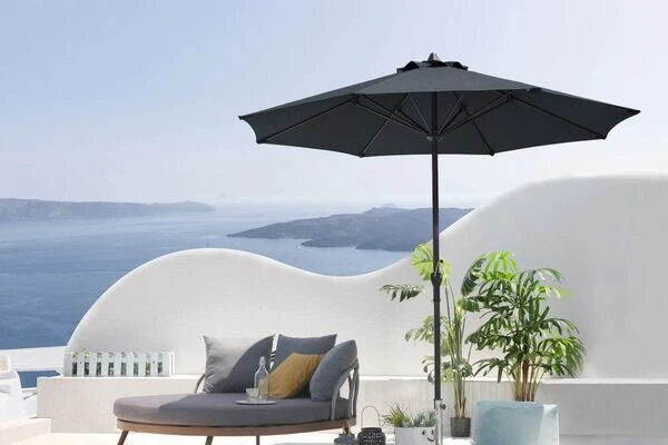 Dieser runde Sonnenschirm von OUTFLEXX eignet sich dank seines großen Durchmessers von ca. 270 cm perfekt für Ihre Terrasse oder den Garten und passt mit seiner modernen Farbe zu vielen Gartenmöbelstilen.