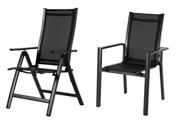 Die Sessel bestechen durch ihre schlichte Optik mit dem pulverbeschichteten Aluminiumrahmen in einem matten Anthrazit in Kombination mit dem schwarzen Textilen-Gewebe. Funktional überzeugen hier sowohl die Hochlehner, als auch die Stapelsessel. Die Rückenlehne der Hochlehner lässt sich kinderleicht in 7 Stufen verstellen und bietet damit einen hervorragenden Sitzkomfort. Dank des pulverbeschichteten Aluminiumgestells sind alle Sessel zudem leicht und einfach zu transportieren. Je nach Bedarf können die Hochlehner zusammengeklappt und die Stapelsessel ineinander gestapelt, und somit platzsparend verstaut werden.