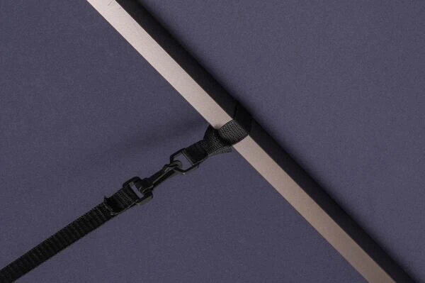 Die Windsicherung für Ampelschirme besteht aus mehreren Polyesterbändern, mit denen Sie die Bewegung Ihres Ampelschirms durch Wind stabilisieren können. Durch die Windsicherung wird zudem die Belastung auf das Schirmgestell Ihres Ampelschirms reduziert. Sie kann auch für weitere Ampelschirme genutzt werden, die eine Feststellschraube am unteren Mast haben. Bitte beachten Sie jedoch, dass Sie durch die Windsicherung keine Erhöhung der Standsicherheit Ihres Schirms erreichen. Die Abspannbänder haben eine Länge von ca. 140 – 270 cm, die Sicherung ist geeignet für Masten mit max. ca. 5,7 x 9,3 cm / Streben mit max. ca. 3 x 2 cm