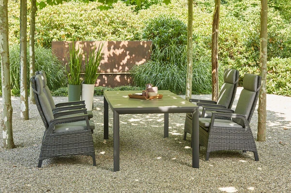 Holen Sie sich eine Extraportion Komfort in Ihren Garten. Die moderne Serie Solea besticht durch höchsten Sitzgenuss. Die einzigartigen Wellness-Möbel vereinen gekonnt Qualität mit trendigem funktionalen Design. Die Rückenlehne des bequemen Dining Sessels lässt sich mehrfach verstellen, somit wird jedes Essen zu einem gemütlichen Miteinander.