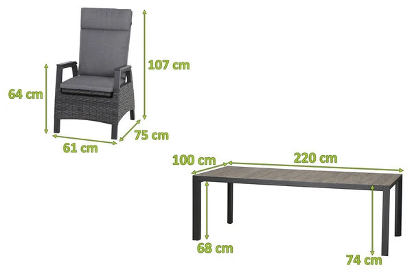 | Rostfreies Aluminiumgestell Der pulverbeschichtete Aluminiumrahmen ist rostfrei, korrosionsbeständig und daher sicher vor vorzeitiger Verwitterung. Deshalb sitzen Sie sehr stabil und haben lange Freude an Ihren neuen Möbelstücken. | |