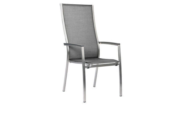 Ihr persönlicher Komfort steht bei den bequemen Sesseln der Serie Cardiff von STERN an erster Stelle. Sie helfen Ihnen dabei den Alltag auch einfach mal Alltag sein zu lassen. Die großzügigen Rückenlehnen der Multipositionssessel lassen sich ganz leicht 6-fach verstellen und ermöglichen Ihnen somit ein individuelles Sitzgefühl und stets die gemütlichste Position. Passen Sie diese in sekundenschnelle auch ganz nach Wunsch an: Sie entscheiden selbst wie Sie am Besten Entspannung finden. Die Stapelsessel verfügen über hohe Rückenlehnen, die nicht nur optisch den Look prägen, sondern auch merklich den Komfort erhöhen. Freuen Sie sich auf die klare, moderne Linienführung, die sich spielend in Ihr Gartendesign integriert. Für die schicken und soliden Gestelle kommt korrosionsbeständiger und silberfarbener Edelstahl zum Einsatz. Die Bespannung der Rücken- und Sitzflächen besteht aus dem innovativen Outdoorgewebe Textilene im trendigen “silbergrau” und sorgt für die nötige Leichtigkeit. Das Material ist sehr hautsympathisch und schenkt ein herrlich luftiges Sitzgefühl, das Sie vor allem in der Sommerhitze schätzen werden. Die Gesamtmaße der Stapelsessel liegen jeweils bei ca. 68,5 x 56 x 110 cm mit einem Gewicht von ca. 7,4 kg. Die Multipositionssessel wiegen jeweils ca. 10,6 kg bei Maßen von ca. 69 x 60 x 110 cm. Die Sessel bieten Ihnen nicht nur eine bequeme Sitzfläche, sondern auch genügend Beinfreiheit am Esstisch. Schlichte und zugleich markante Armlehnen aus anthrazitfarbenem Aluminium geben zusätzlichen Halt. Sie können die Sitzmöbel nach Lust und Laune aufstellen und ausrichten. Zur Aufbewahrung stapeln oder klappen Sie die Sessel einfach bis zum nächsten Einsatz platzsparend zusammen.