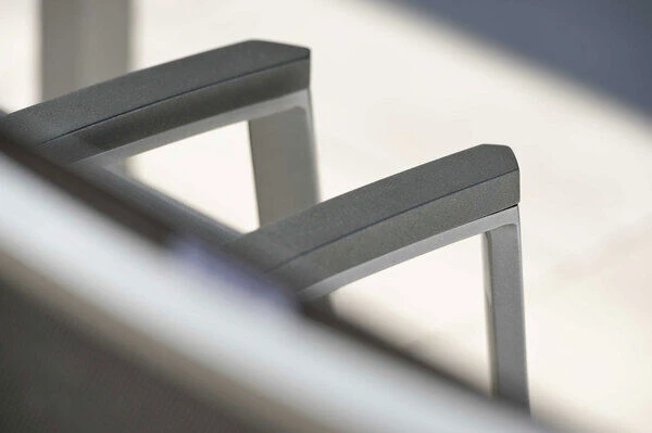 | Hoher Sitzkomfort Das für die Sitzfläche und Rückenlehne verwendete Textilenegewebe bietet neben einer sehr hohen Witterungsbeständigkeit auch luftdurchlässige Eigenschaften. Dadurch sitzt es sich ganz besonders komfortabel auf diesen Sesseln – auch ohne Polsterauflage. | |