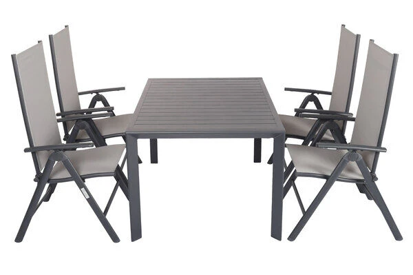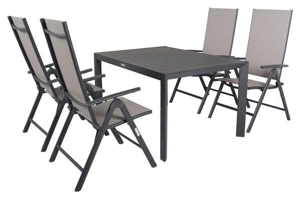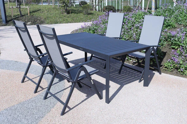 5-teilige Esstischgarnitur von VILLANA aus Aluminium/Textilene in anthrazit/grau mit Platz für 4 Personen