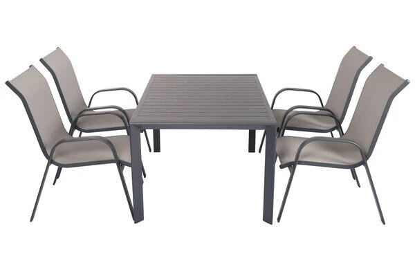 5-teilige Esstischgarnitur von VILLANA aus Aluminium/Textilene in anthrazit/grau mit Platz für 4 Personen